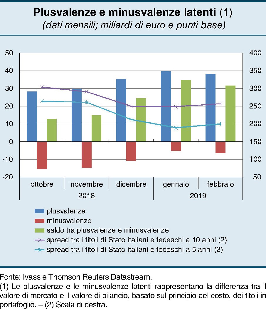 Sul versante reddituale, il carospread non è meno pernicioso. “Nel 2018 – scrive la Banca – il rendimento medio del capitale e delle riserve delle compagnie italiane si è ridotto in misura rilevante, al 6,4 per cento”, ossia 2,7 punti in meno rispetto al 2017. Il calo più rilevante è stato subito dal ramo vita (3,8 punti) a seguito delle rettifiche di valore sui titoli detenuti dalle compagnie. Com’è noto, infatti, l’aumento dello spread fa diminuire il valore dei titoli in portafoglio. La situazione è leggermente migliorata da novembre scorso, quando la ripresa dei corsi dei titoli di stato ha aumentato il saldo fra plusvalenze e minusvalenze latenti.