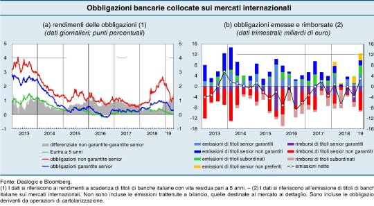 Queste emissioni sono state sia senior preferred, ossia privilegiate (6,8 miliardi) che non preferred, ossia subordinate (9 miliardi). Queste ultime, in particolare, sono importanti perché sono titoli subordinati computabili ai fini delle regole sul requisito minimo di fondi propri e passività soggette a bail-in (minimum requirement for own funds and eligible liabilities, MREL. Si tratta insomma di quel cuscinetto di capitale aggredibile in caso di risoluzione del quale le banche soggette a vigilanze europea devono dotarsi per essere in regola. E trattandosi di debito più rischioso, paga chiaramente più interessi e quindi costa caro alle banche. Per quelle italiane ancor di di più, visto che devono tener conto del rischio paese. E infatti alla fine di ottobre il rendimento medio delle subordinate per le banche italiane era del 3,2%, superiore dello 0,7% rispetto al valore di inizio 2018.