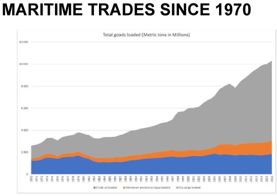 Se davvero, come stimano alcuni osservatori, la quantità di tonnellate per chilometro di merci trasportate per mare è destinata a triplicare da qui al 2050 sarebbe saggio iniziare a chiedersi quanto saranno affollati i nostri mari e, soprattutto, se questo enorme traffico di cargo e petroliere non finirà in un gigantesco ingorgo. A ben vedere quello che si prevede succederà entro i prossimi trent’anni è già successo nei precedenti cinquanta e ciò che ne abbiamo tratto è uno straordinario aumento della ricchezza collettiva e un altrettanto straordinario aumento delle tensioni internazionali, che ha vari nomi – populismo, sovranismo, multipolarismo, secolo asiatico – ma la stessa sostanza: una globalizzazione crescente che fatica a trovare un equilibrio. Il passato ci racconta di tante globalizzazioni finite male e anche quella attuale non se la passa troppo bene. Forse la storia si ripeterà e forse no. Il futuro è scritto sull’acqua del mare.