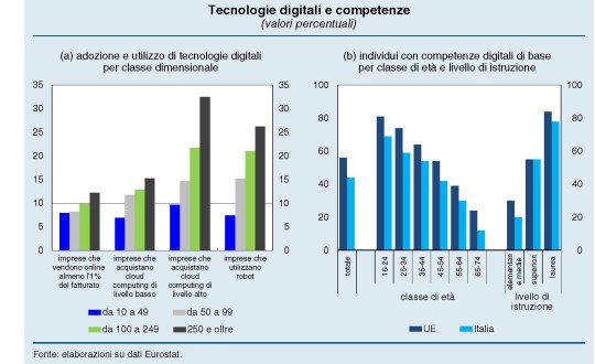 Cosa provoca tutto ciò? Semplice: “Il basso fabbisogno di competenze digitali nel mercato del lavoro e la scarsa dimestichezza della popolazione con le tecnologie digitali interagiscono influenzandosi a vicenda: da un lato, gli individui possono trovare infatti poco conveniente acquisire capacità scarsamente richieste dalle imprese, dall’altro, la difficoltà di reperire forza lavoro con competenze adeguate può scoraggiare l’adozione di processi produttivi innovativi da parte delle aziende”.