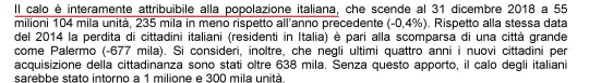 Quindi è chiaro che coviamo un disegno che l’Istat non ha capito, ma che ora le spieghiamo. Gli italiani si stanno estinguendo senza clamore – a parte quelli dell’Istat che tanto non legge nessuno – per lasciare il debito pubblico in eredità agli immigrati, che intanto aumentano. Se lo pagassero loro.