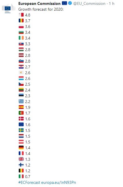 Esatto! Continuiamo a coltivare la nostra vocazione ad essere fanalino di coda nella crescita europea, frutto sicuramente del nostro perdurante ingegno creativo.
