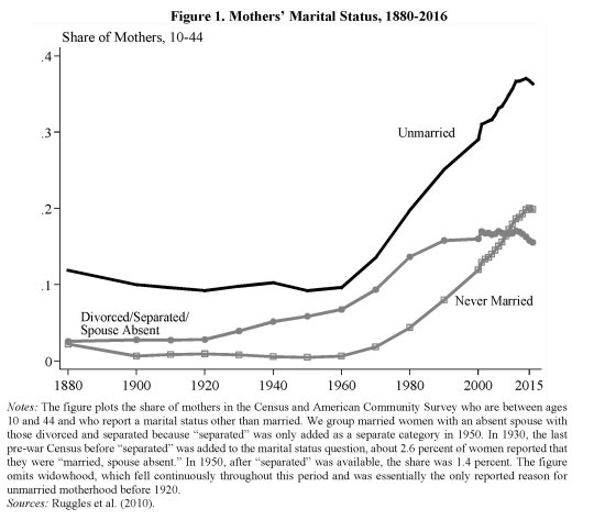 L’analisi condotta dagli economisti del Nber mostra che questi servizi ebbero impatti rilevanti sulla famiglia americana. I tassi di divorzio aumentarono, ma anche gli auti alle famiglie con figli o i programmi di assistenza per le famiglie monoparentali. Tutto ciò contribuì a cambiare la struttura delle famiglie. Già nel 1984 il tasso di nascite fuori dal matrimonio era cresciuto del 16% rispetto a un ventennio prima, mentre era scesa del 2% la probabilità che una madre vivesse col marito dei suoi figli. Questo non dipese dall’aumento delle nascite, ma dal declino dei matrimoni.