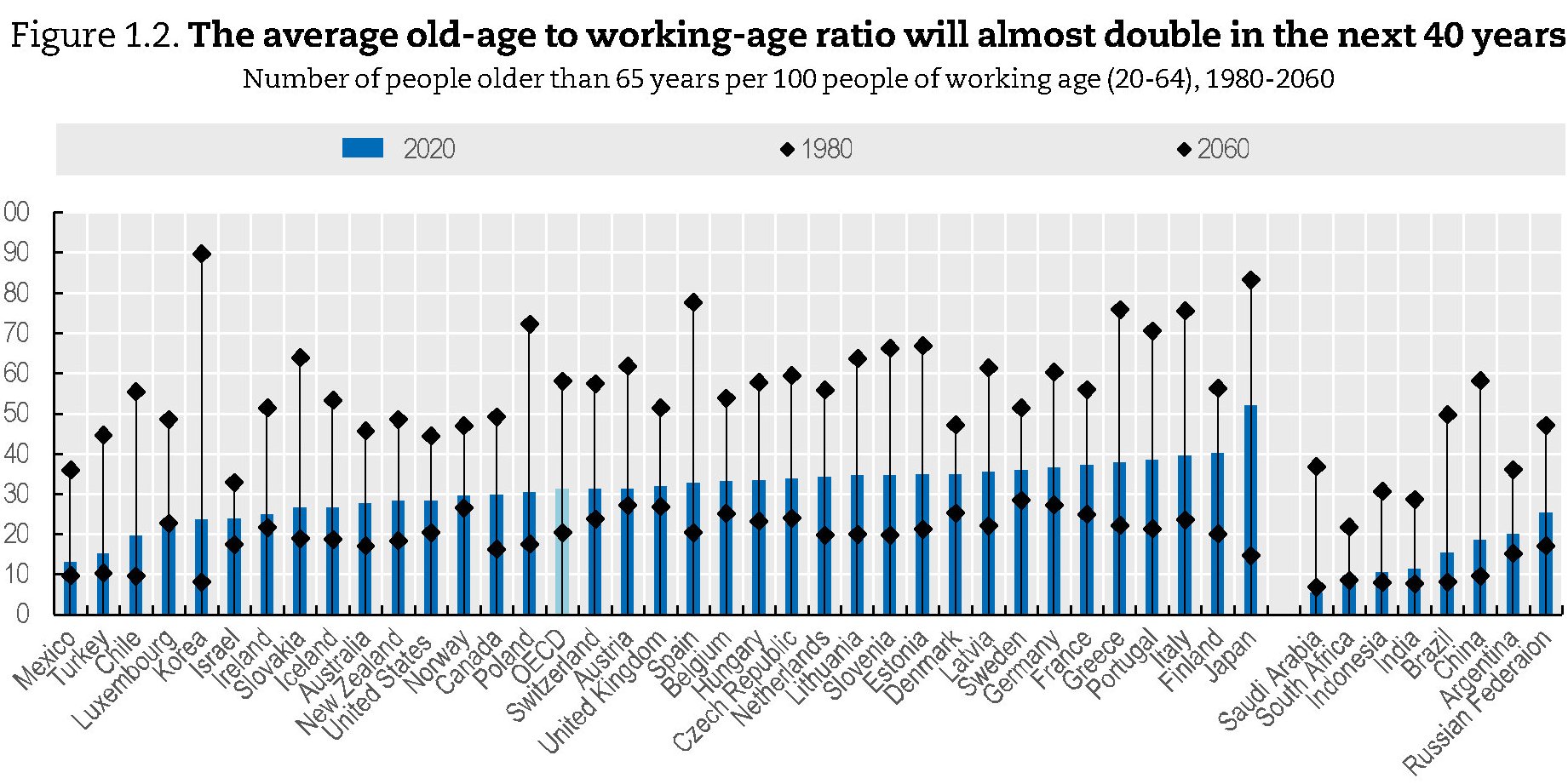 Nel mondo coi capelli bianchi che verrà ci saranno, in media, 60 ultra 65enni ogni 100 persone in età lavorativa, con situazioni vagamente surreali, come quella coreana – non era facile far peggio del Giappone – dove le pantere grigie saranno addirittura 90 su 100. Noi italiani saremo poco distanti con 80, insieme con greci e spagnoli, a dimostrazione dello strano destino comune che si prepara per mediterranei e asiatici. Come si possa riuscire a garantire una previdenza dignitosa a quest’esercito è argomento che soltanto la nostra mancanza di prospettiva riesce a relegare ai margini del dibattito pubblico. Salvo pochi specialisti, che suonano da anni allarmi inascoltati, nessuno si preoccupa di quel che sarà fra quarant’anni. Eppure basterebbe osservare la distanza fra il rapporto anziani/lavoratori nel 1980, che sembra ieri, e quello nel 2060, che è dopodomani. Capiremmo che è la stessa differenza che c’è fra la pensione e il pensionamento delle pensione.