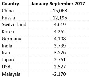 Altresì utile sapere che la Cina (dati 2017) era il primo partner eccedentario della Turchia.
