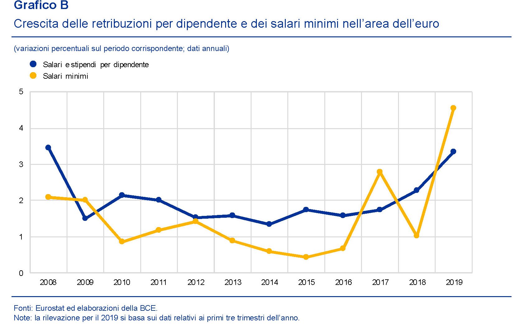 Le retribuzioni dell’EZ spinte da salari minimi e calo dei contributi