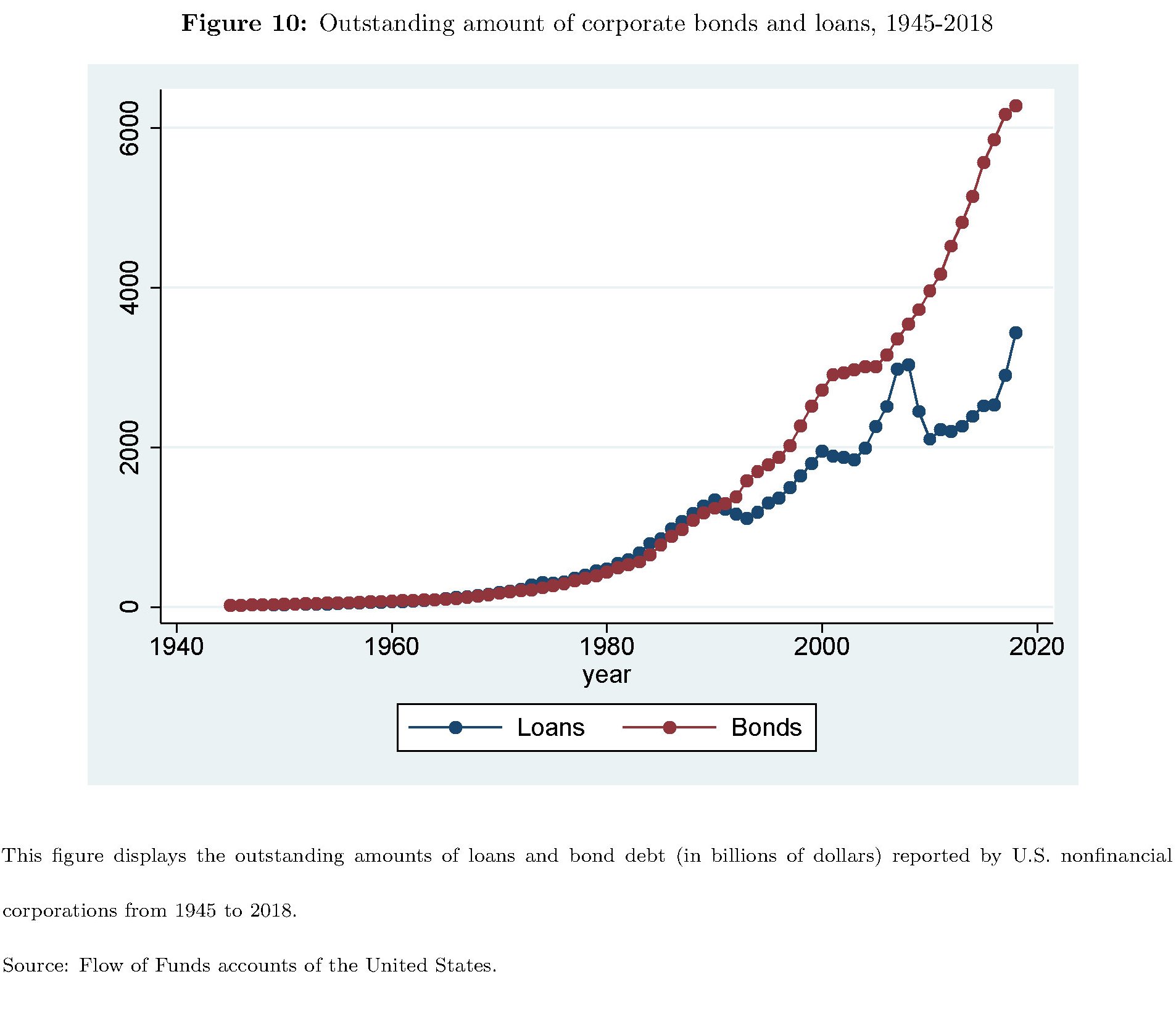 Gli autori si chiedono come mai le aziende abbiano preferito nel tempo emettere debito non garantito, che ovviamente risulta più costoso e difficile da collocare. Le risposte sono diverse, ma prima ancora di scorrerle, partiamo da un altro dato assai eloquente: la quantità di debito emesso nell’ultimo secolo.
