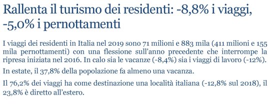 Leggo incredulo che gli italiani sono andati meno in vacanza del solito l’anno scorso. Addirittura sono calati del 9% i viaggi, dice l’Istat, che come sempre, sa tutti gli affaracci nostri.