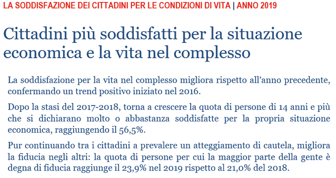 Siamo più contenti, porca miseria. Persino più soddisfatti di prima, robe da matti. Addirittura più della metà degli under 25, che dovrebbero essere i disgraziati per antonomasia, non solo sono felici, ma anche ottimisti quando pensano al futuro.