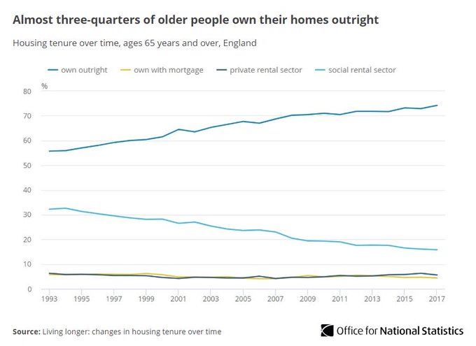 Il progresso non è da attribuirsi però a un improvviso arricchimento degli anziani, quanto al lancio dell’iniziativa “right to buy” che previde, sin dal 1980, la vendita di case popolari a prezzi ridotti. Il che favorì notevolmente la crescita dei proprietari.