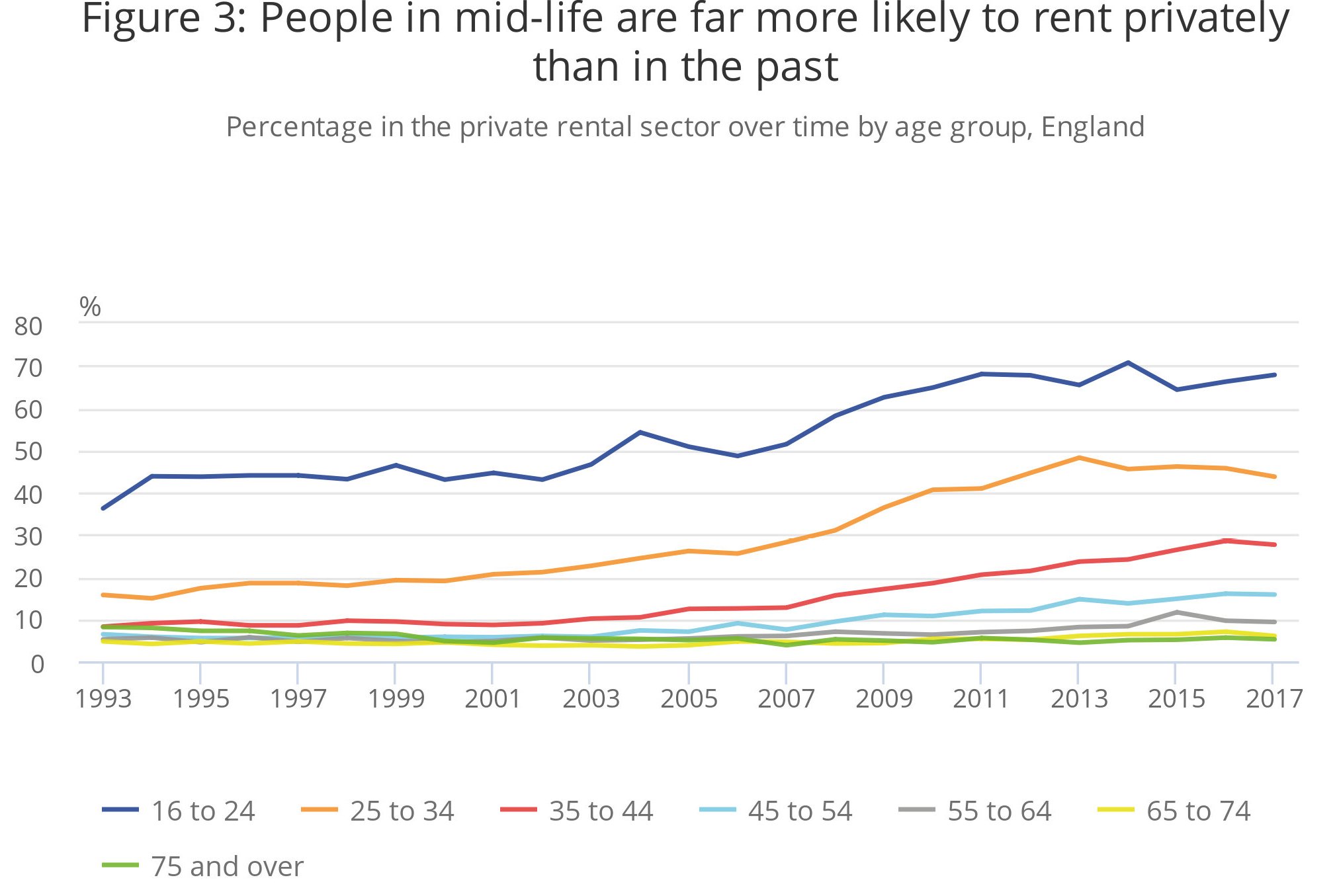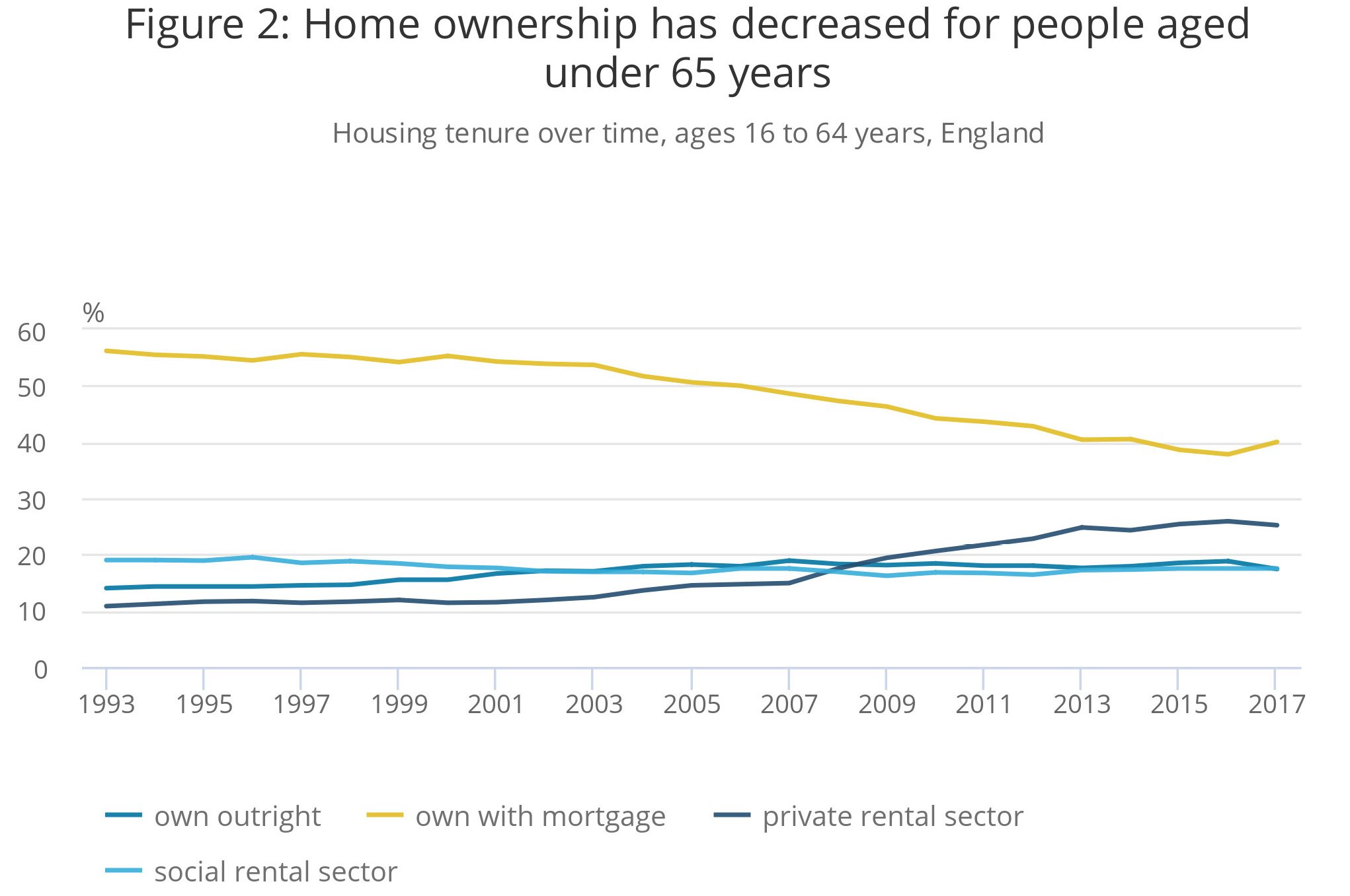 Le conseguenze del “right to buy” si sono viste anche sul mercato degli affitti. Gli anziani titolari di affitti agevolati sono diminuiti dal 32 al 16% dal 1990, mentre gli affitti nel settore privato sono rimasti stabili intorno al 6% per tutto il periodo.