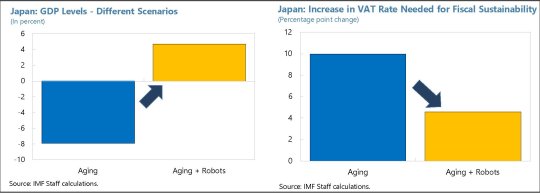 La civiltà delle macchine giapponesi sembra fatta apposta per nutrire i peggiori timori luddistici che affliggono il capitalismo dalla sua nascita. Con la differenza rispetto ad allora che adesso coltivano piuttosto la speranza che i robot, l’intelligenza artificiale e i vari succedanei degli uomini almeno tengano in vita la società. Il grafico sotto rappresenta questa speranza.