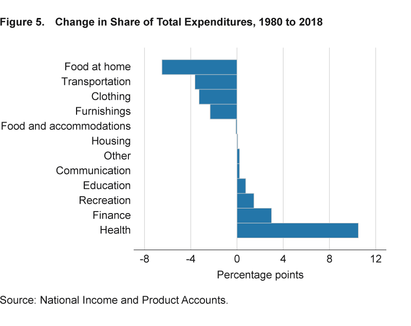 Interessante sottolineare che la spesa per l’housing, quindi la casa, non si è mossa per niente, al contrario di quella per la salute che è quasi il doppio rispetto al 1980. Un altro probabile “trascinamento” generato dall’invecchiamento della popolazione.
