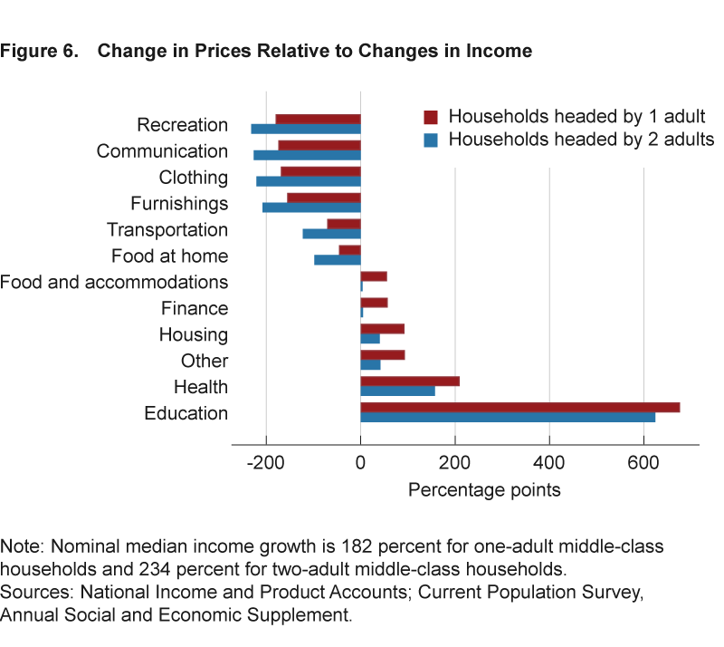 Per dirla con le parole della Fed, “le spese per salute, alloggio e istruzione sono molto più elevate di quanto non fossero per la classe media. Tuttavia sono anche diminuiti i prezzi in quasi tutte le altre categorie come cibo e trasporti e attività ricreative”.
