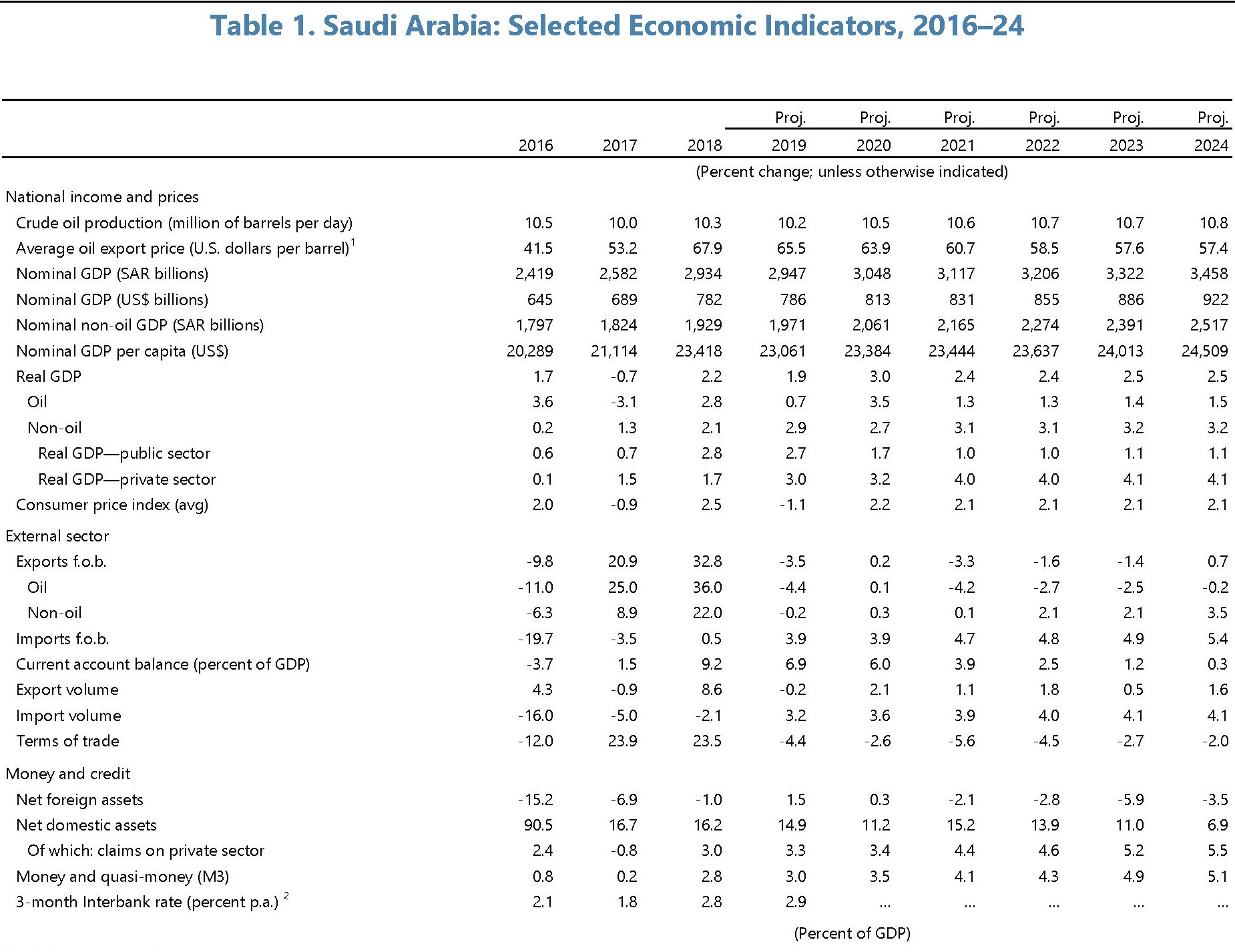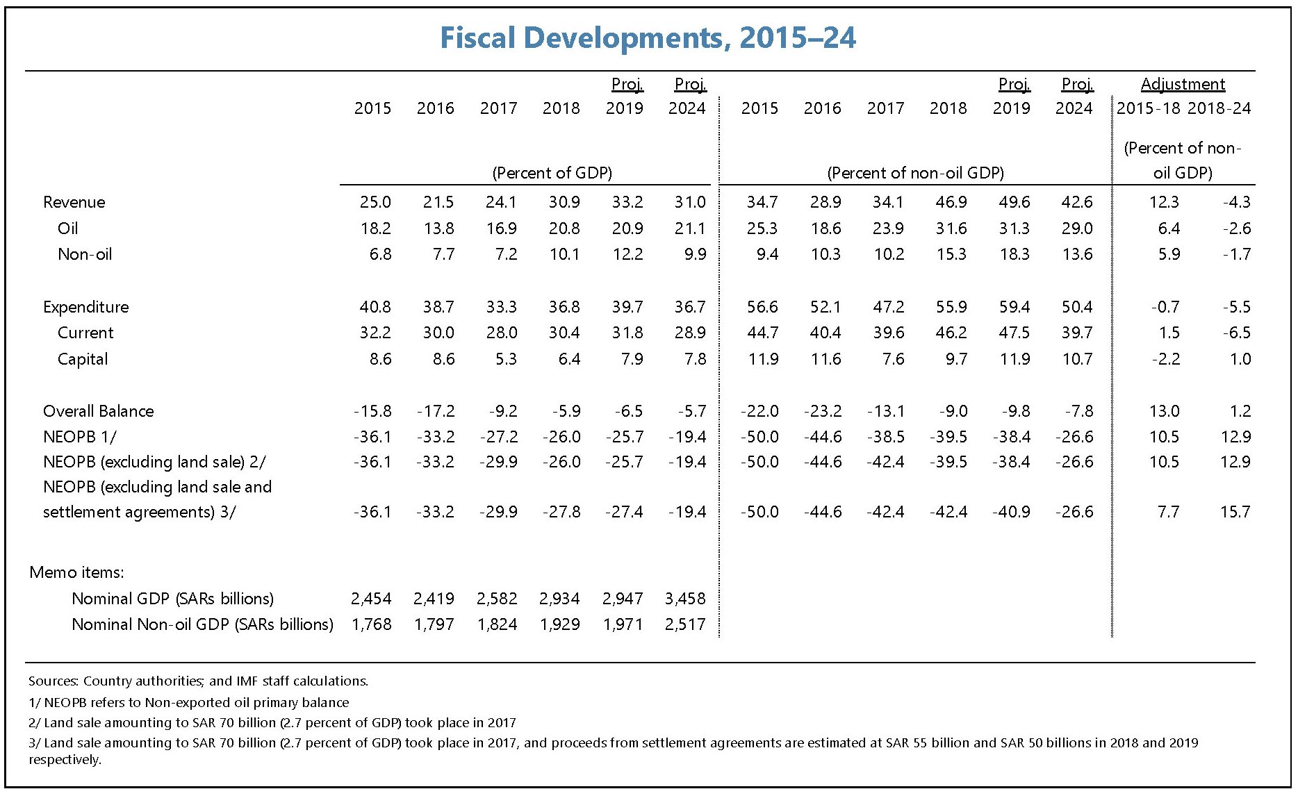 Lasciando da parte le numerose speculazioni che si sono fatte sui punti di pareggio delle produzioni saudite, conviene affidarsi alle simulazioni ufficiali fatte dal Fmi, tenendo a mente che già a partire dal 2014, quando il mercato conobbe un profondo scossone, il paese pagò un prezzo notevole in termini di risorse, come si può osservare guardando al saldo fiscale di quegli anni.