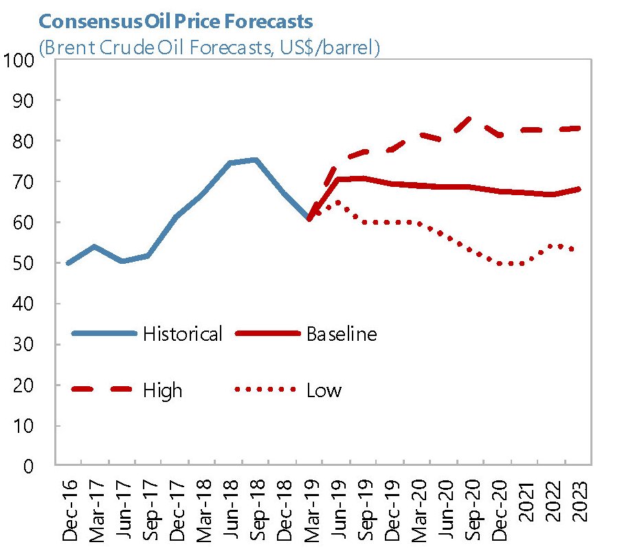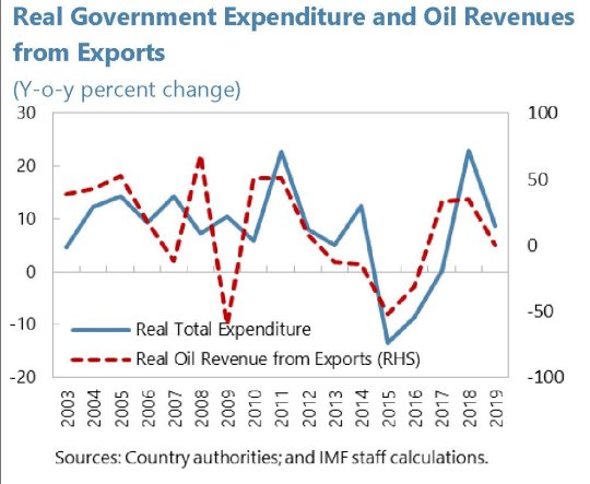 Nelle previsioni del Fondo, le entrate da petrolio rappresentano una quota importante – superiore al 20% del pil – delle entrate complessive del governo.