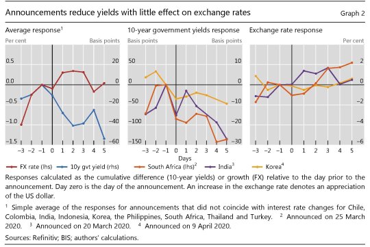 La conseguenza di questa nuova strategia, che ricalca sostanzialmente quella dei paesi avanzati, è stata che i rendimenti sui bond locali sono diminuiti significativamente, con ciò limitando molto anche l’effetto sui tassi di cambio.