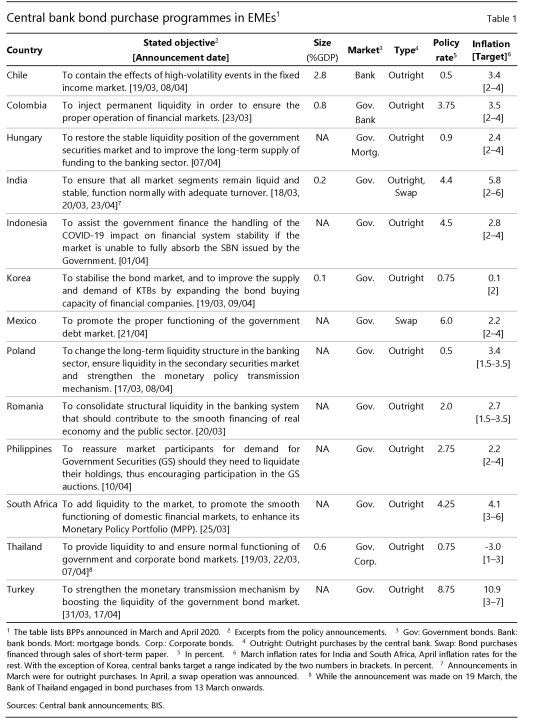 Qualche numero aiuterà a dimensionare il problema. In generale questi programmi di acquisti di asset sono stati effettuati attingendo alle riserve e non sono stati sterilizzati. In pochi casi si sono svolti effettuando swap, acquistando bond a lungo termine tramite la vendita di strumenti a breve. Alcune banche si sono anche spinte ad annunciare l’entità dei loro programmi di acquisto. Si tratta di importi tutto sommato modesti, che vanno dallo 0,1% della Corea del Sud, al 2,8% del pil in Ungheria. Alcuni di questi programmi si sono focalizzati sul mercato secondario dei bond.