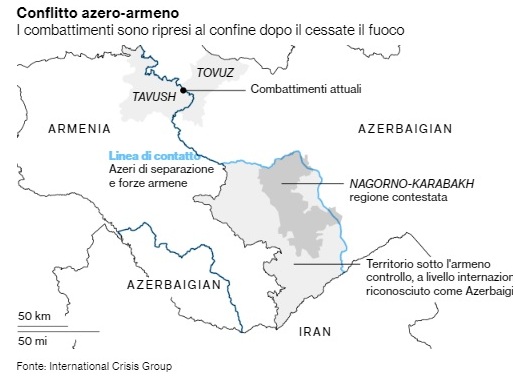 Ma è chiaro che l’ostilità fra i due paesi, conseguenza del collasso dell’Unione sovietica, quando i due stati divennero indipendenti, che facilmente si è trasformato in un conflitto non solo etnico ma anche religioso – gli armeni sono cristiani, gli azeri musulmani – è ben lungi dall’essere solo un fatto locale.