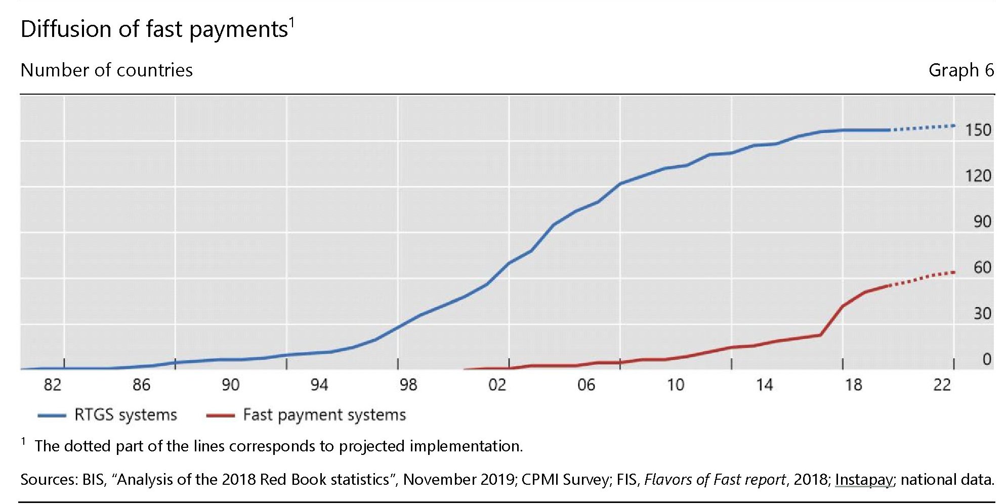 I dati mostrano che già adesso il contributo delle banche centrali ai sistemi di pagamento innovativi è crescente, con uno schema che ricorda quello che si è iniziato ad osservare all’inizio degli anni ’80, quando gli istituti di emissioni diventarono i terminali dei sistemi di pagamento all’ingrosso (Real-time Gross settlement Transfer system, RTGS).