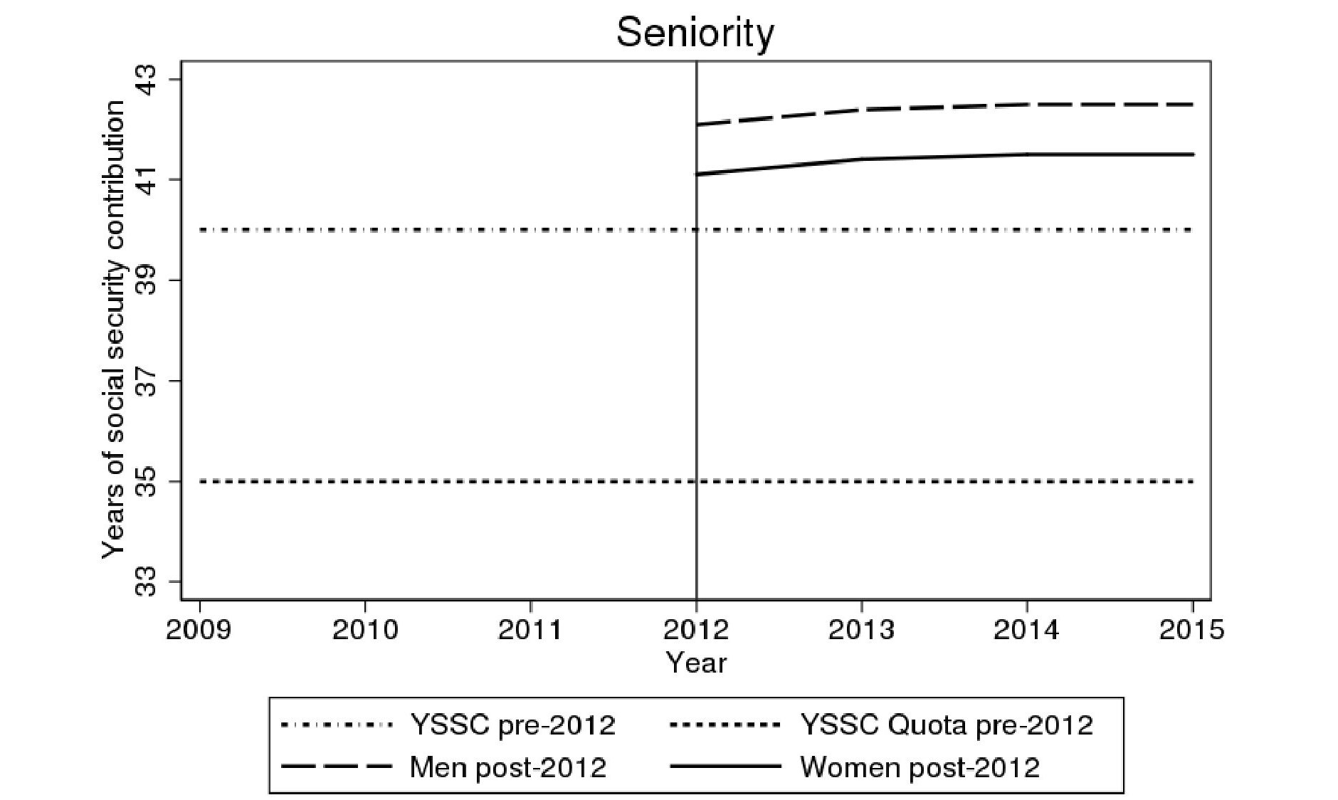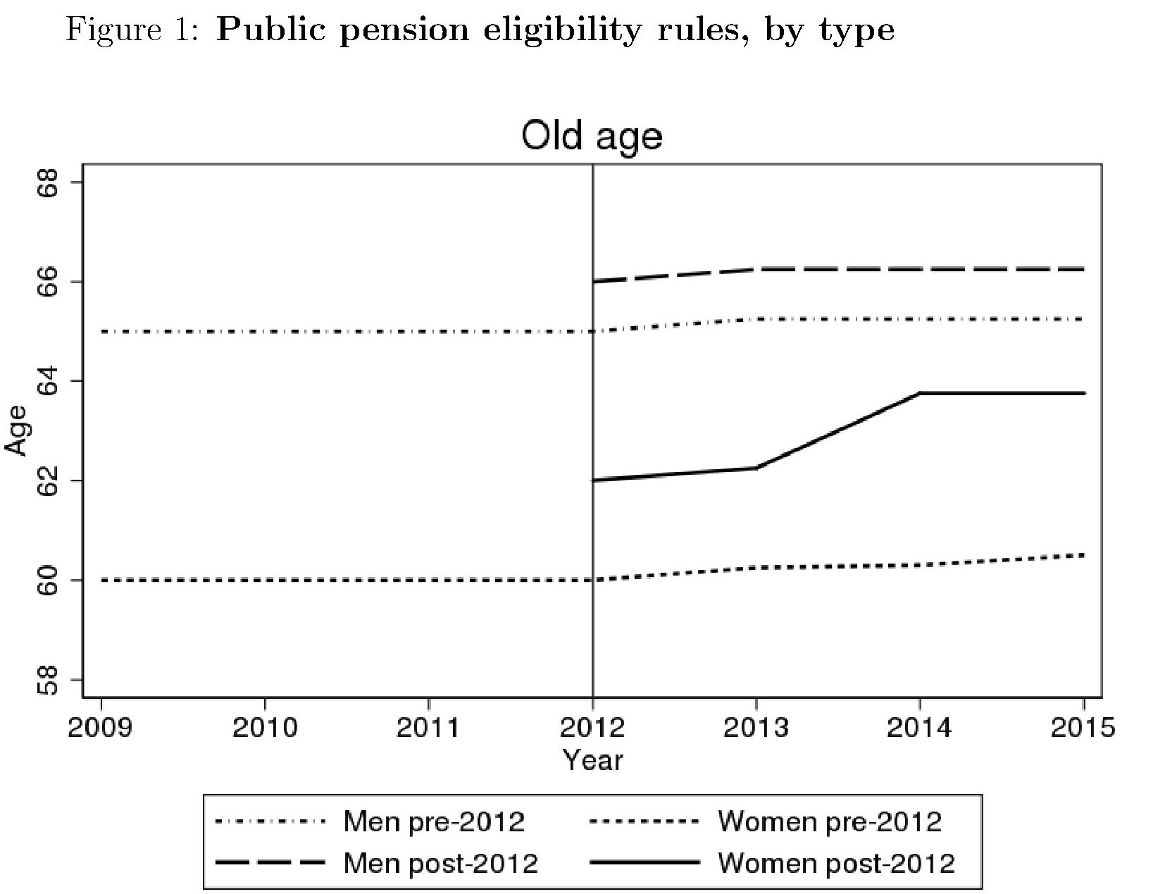 L’effetto della riforma Fornero è chiaramente visibile nei grafici sotto, riferito il primo alle pensioni di vecchiaia (old age) e il secondo a quelle di anzianità (seniority).