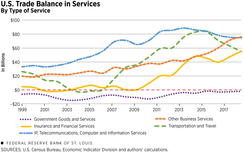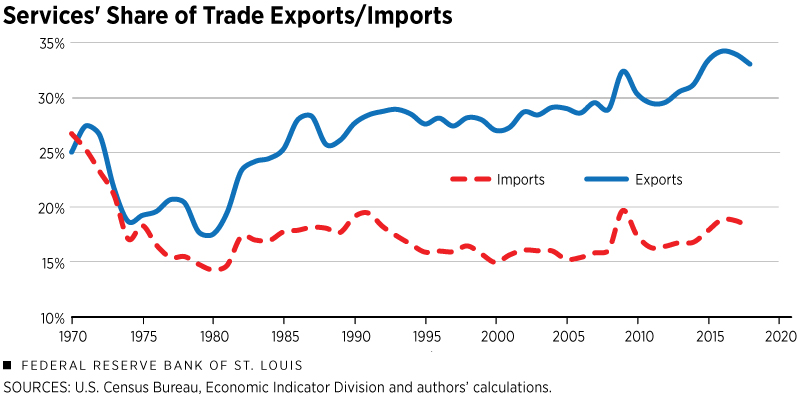 Si tende a sottovalutare l’impatto che le innovazioni tecnologiche provocano sul commercio internazionale. Per questo è molto interessante scorrere un lungo approfondimento pubblicato dalla Fed di s.Louis che si pone una domanda alla quale è assai istruttivo provare a rispondere: “Il miglioramento tecnico dello scambio di servizi può trasformare gli Usa in un esportatore netto?”