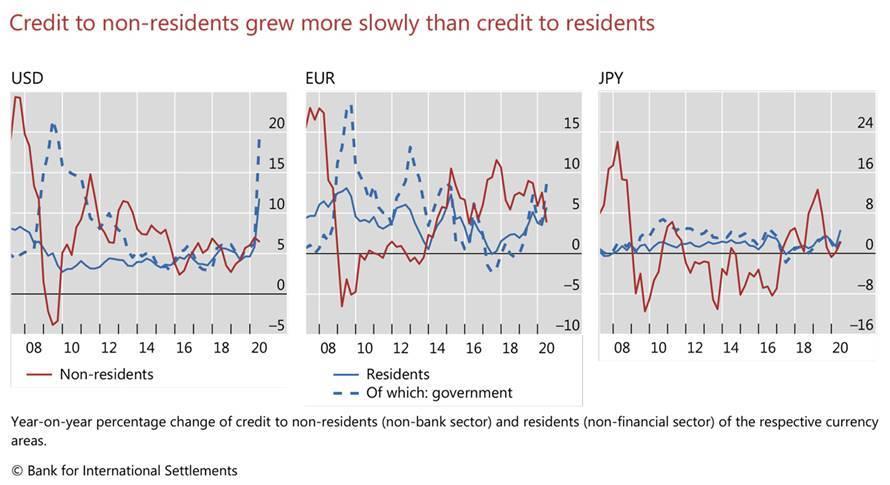 Tutto come prima allora? Non proprio. Fra le novità fotografate nell’ultima release della Bis ce n’è una che merita di essere sottolineata. Nelle principale giurisdizioni valutarie osservate, per la prima volta dai tempi della Grande Recessione del 2008, si è assistito a una maggiore crescita del credito interno rispetto a quello esterno, Questa domanda di credito interno è stata in larga parte guidata dalle esigenze del governo.