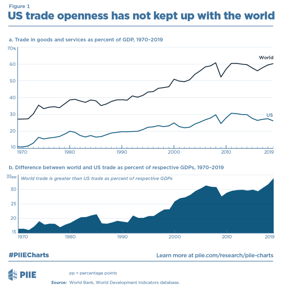 Ecco perché risulta molto interessante una lettura proposta dal PIIE, che argomenta dati alla mano come l’elezione di Trump non sia stato né un incidente della storia, né la causa della diffusa sensazione della retromarcia degli Usa dalla globalizzazione, ossia il loro miglior successo nel secolo alle nostre spalle. Il rinculo, infatti, è iniziato molto prima di Trump ed è molto probabile proseguirà anche in futuro, essendo frutto di un certo clima culturale, prima ancora che politico, che agita le economie avanzate da molto tempo.