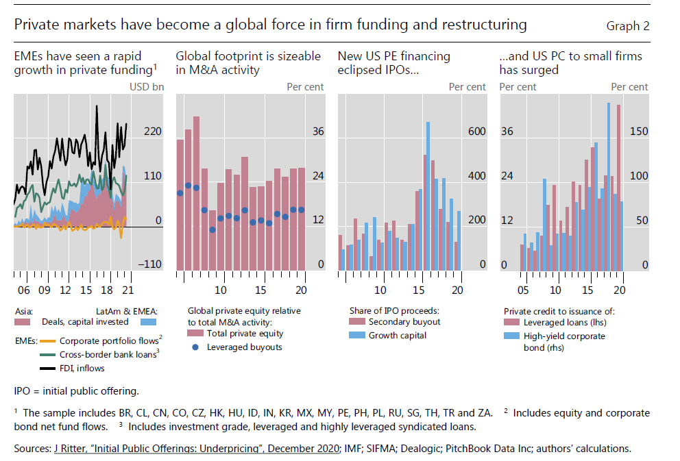 Questo ci conduce alla seconda caratteristica: i loro ricavi sono estremamente volatili. Dulcis in fundo, proprio perché “privati” la regolazione alla quale sono sottoposti è molto leggera. Il combinato disposto fa somigliare questi soggetti a efficienti bombe a frammentazione inserite nei mercati. O, per dirla con le parole della Bis, “rispetto ai mercati pubblici, il finanziamento fornito attraverso i mercati privati è altrettanto prociclico, mentre la sensibilità alla politica monetaria varia tra i segmenti di attività”.