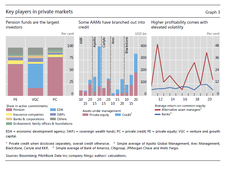 La Banca si riferisce in particolare ai cosiddetti “alternative asset managers” (AAMs), ossia entità che gestiscono asset finanziari e che si comportano sostanzialmente come banche, quindi effettuano prestiti, generalmente alle piccole imprese, o, su scala globale, ai paesi emergenti. Appartengono, insomma, a quelle Non bank financial institutions (NBFIs), di cui abbiamo parlato più volte. Categoria alle quali si iscrivono anche le altre banche ombra attive nel mercato dei capitale – classicamente i fondi o i fondi pensione – con la differenza che questi asset manager lavorano come case di investimento private – quindi non sono soggette alle regole di pubblicità cui devono sottostare le entità più grandi. In tal senso, quindi, sono “private”.