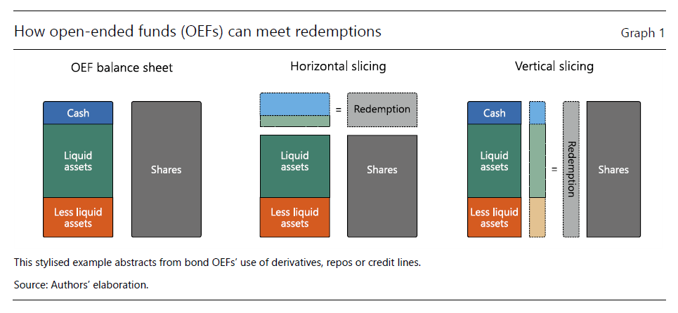 Come ogni entità che gestisce denaro altrui, anche gli OEFs rischiano sempre di scivolare nella gestione della liquidità: classicamente quando accade che le richieste di riscatto siano superiori alle loro disponibilità, il che li costringe a vendere asset per recuperare risorse.