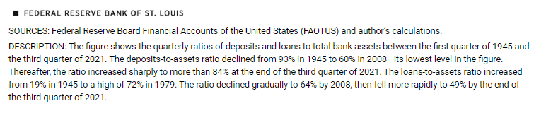 Si può raccontarla in tanti modi questa storia bancaria. Partendo ad esempio dal 1955, dove sembra ci riporti la lancetta del tempo. Le banche americane, quell’anno, avevano la stessa percentuale di prestiti sul totale dell’attivo dell’ultimo trimestre del 2021. E sempre loro, negli stessi anni, avevano lo stesso rapporto di depositi sul totale del passivo. Una coincidenza troppo singolare per non raccontare una storia, che potremmo titolare “fuga dal rischio bancario”.