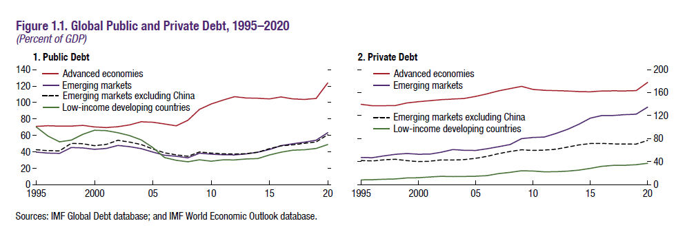 Non stiamo adesso a sottilizzare su quanto indebitati siano i ricchi emergenti e quanto poco i paesi a basso reddito: potremmo persino scoprire che c’è un collegamento fra il livello dei debiti e quello della ricchezza, ossia dei crediti. E verrebbe meno tutta una letteratura. E sorvoliamo anche sul fatto che il debito pubblico è cresciuto molto più del privato, sempre in quei famosi paesi ricchi, che pudicamente vengono chiamati “avanzati”. Perché il punto è proprio questo. Privati e pubblici, quanto all’aumento del debito, per me pari sono, come diceva il poeta. E pure per i mercati, evidentemente.
