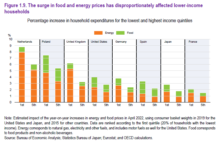 Ormai è chiara a tutti la complessità del problema di fronte al quale ci troviamo. Proviamo a riepilogare prendendo a prestito alcuni dati diffusi da Ocse nel suo ultimo outlook. Primo tema: i salari. In alcuni paesi, come il nostro, già sottodimensionati da tempo, adesso vengono rapidamente impoveriti da un’inflazione molto veloce.