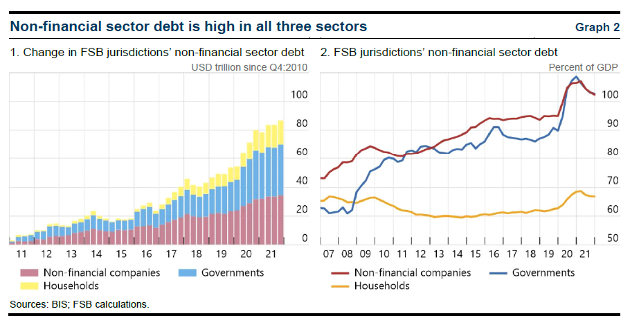Osservando l’andamento del debito dei soggetti non finanziari dei paesi censiti dal Financial stability board, quelli del G20 tanto per cominciare, due cose in particolare vale la pena sottolineare. Intanto che ormai supera gli 80 trilioni di dollari, quando un decennio fa non arrivava a una decina. La seconda è che a salire sopra a questa montagna di debiti siano stati principalmente i governi, costretti ad aprire generosamente il portafoglio prima per la crisi finanziaria del 2008 e poi per quella sanitaria del 2020, e a seguire le imprese. Entrambi ormai hanno un debito cumulato stabilmente intorno al 100 per cento del pil. Il debito delle famiglie. invece, malgrado qualche saliscendi, non è mai uscito dalla banda di oscillazione compresa fra il 60 e il 70 per cento del pil. Sopra la vetta del 100 per cento non è ancora arrivato. Per adesso. Non è una minaccia. E’ un avvertimento.