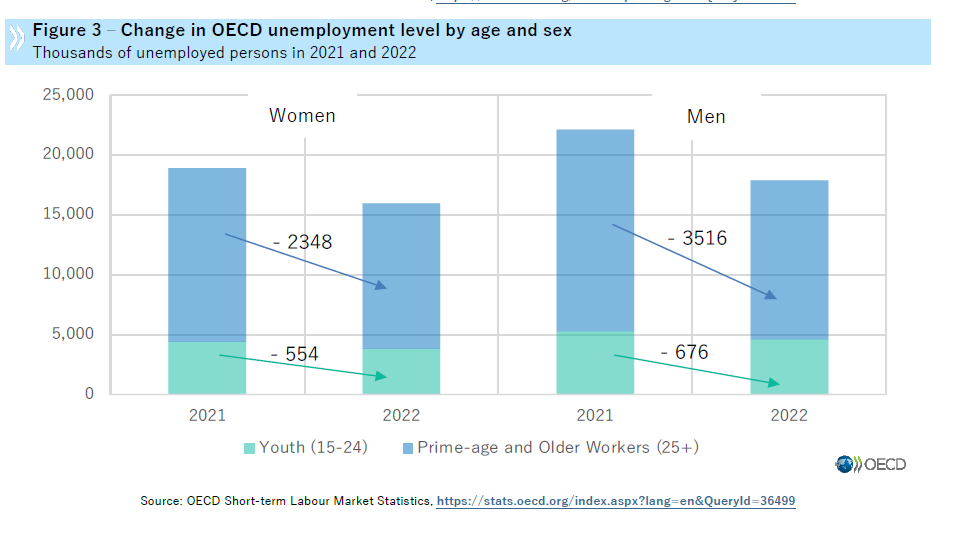 A parte questo dettaglio non da poco, i tassi di disoccupazione sono scesi un po’ ovunque e in alcuni paesi, come Germania e Stati Uniti sono ai minimi, mostrando un marcato miglioramento anche fra donne e giovani, nel confronto fra il 2022 e il 2021.