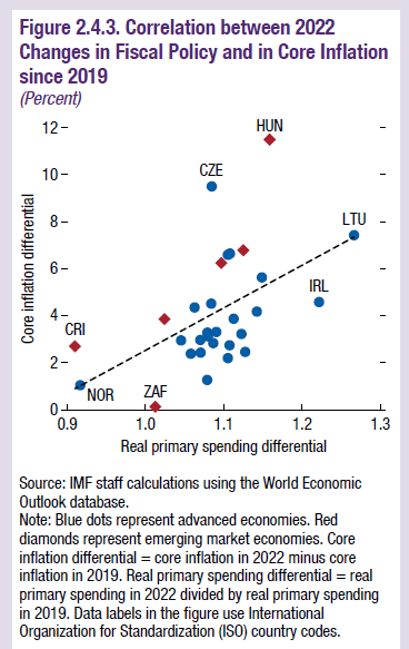 Dopo la pandemia non si sono osservati certi eccessi, e tuttavia si è vista una certa correlazione fra aumento della spesa reale e dei prezzi nei paesi dove la prima variabile è cresciuta significativamente.