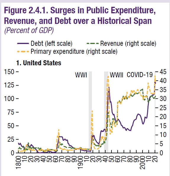 La prima evidenza notevole è che l’aumento della spesa primaria e quindi del debito osservato nel 2020 è stato uno dei più significativi degli ultimi due secoli. Paragonabile appunto a quello di una guerra.