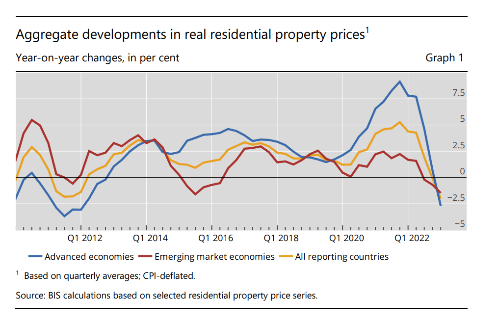 In sostanza, il prezzo delle abitazioni non ha seguito quelle dell’inflazione, deprimendo il valore reale del mattone, con un calo più marcato nei paesi avanzati (-2,7 per cento), dove il morso dell’inflazione è stato assai più pronunciato.