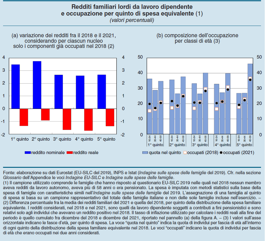 Le famiglie più povere, infine, hanno potuto fruire delle caratteristiche della ripresa del 2021, che si è concentrata su settori a basso valore aggiunto e nelle costruzioni, generando quindi opportunità di lavoro per persone meno qualificate.
