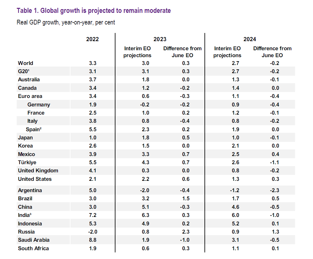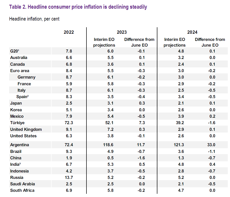 Un esempio basterà a chiarire. Ocse scrive che l’inflazione di fondo nelle economie del G20 dovrebbe passare dal 4,3 per cento del 2023 al 2,8 del prossimo anno, che comunque sta sopra i target di molte banche centrali, mentre la crescita globale dovrebbe rallentare dal 3 per cento di quest’anno al 2,7 per cento del prossimo. Nessuna recessione, quindi, ma un graduale rallentamento dell’economia, che peraltro potrebbe peggiore drasticamente qualora intervengano altri fattori. Segnatamente un peggioramento dell’inflazione, o una caduta più ampia del previsto del pil cinese.