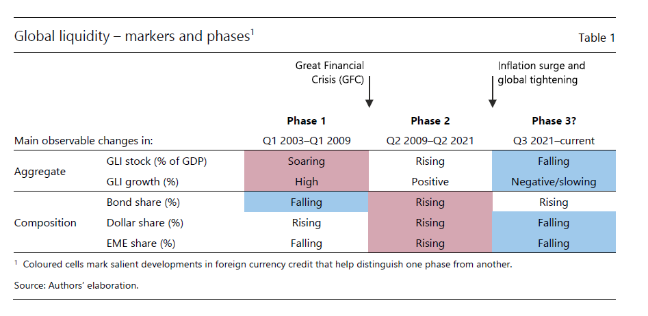 Chiarito il concetto, veniamo al punto. La Bis svolge un’osservazione dell’indicatore nell’ultimo ventennio e arriva alla conclusione che siamo entrati in una terza fase nell’andamento della liquidità globale. Che significa che i flussi stanno cambiando, sia nelle quantità che nella composizione e nella destinazione.