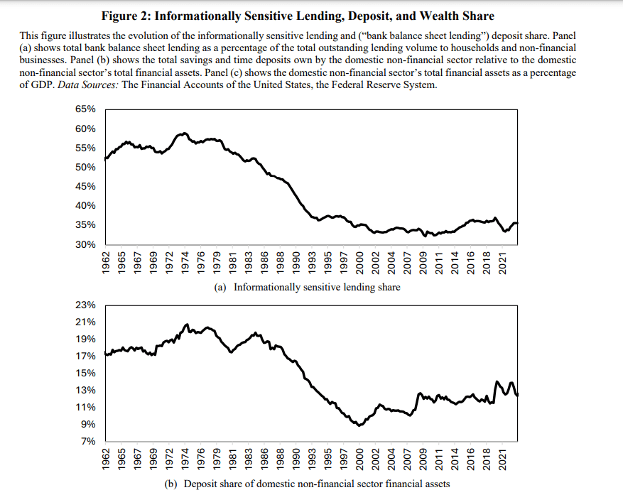 Rimane il fatto. Il declino secolare dei prestiti bancari, come lo racconta un bel paper del NBER pubblicato alcuni giorni fa, è innanzitutto la storia di una nuova modalità di creazione della ricchezza che, come ogni cosa porta con sé luci e ombre. Se prima di questa sorta di rivoluzione del credito nessun manager di una grande banca (o di un’impresa) guadagnava, come accade adesso, mille e più volte quello che guadagna un operaio, è vero altrettanto che la nostra attualità non si esaurisce in questa brutta narrazione, parola ancora più brutta.