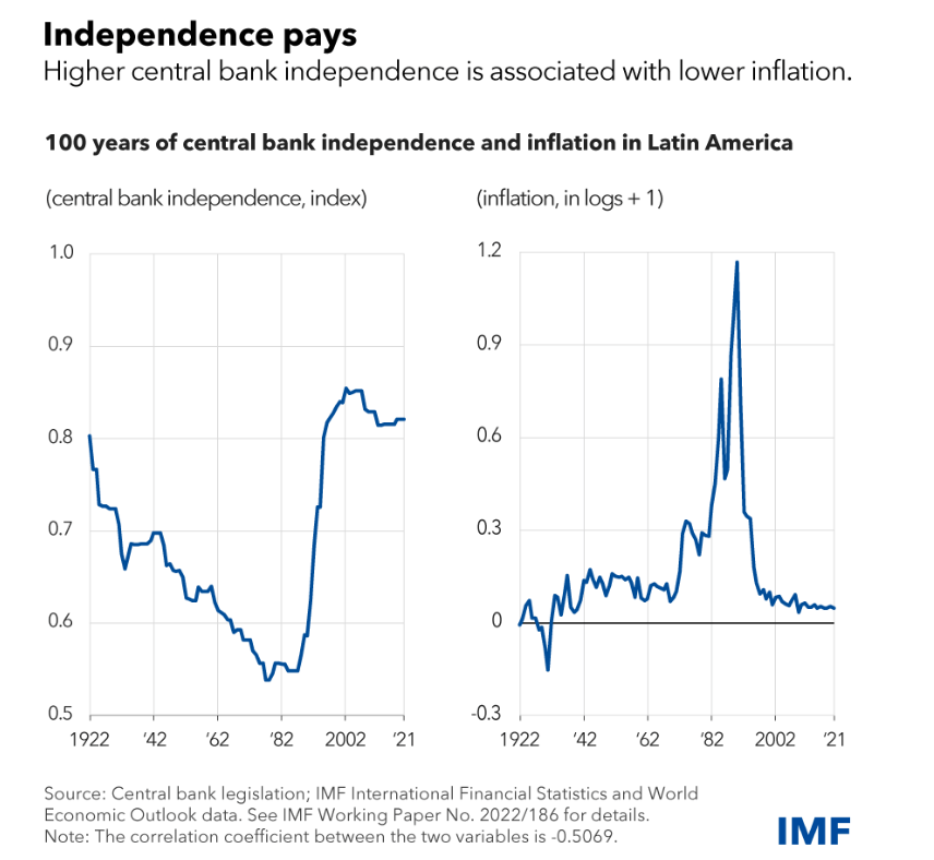Tale conclusione è l’esito di una ricerca che ha coinvolto una dozzina di banche centrali, in un arco temporale fra il 2007 e il 2021. Ma il risultato è coerente con quello osservato in un altro studio che ha studiato le decisioni di 17 banche centrali dell’America Latina nell’ultimo secolo. Anche qui è stato riscontrato che una maggiore indipendenza viene associata a migliori risultati nella lotta all’inflazione.