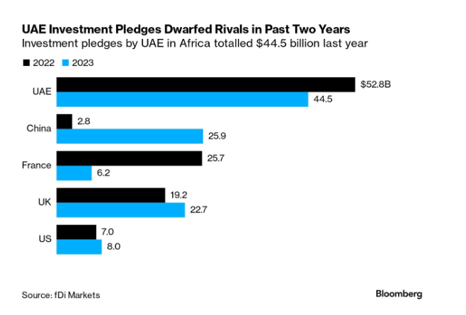Molto opportunamente Bloomberg ci ricorda la posizione di rilievo che gli Emirati Arabi Uniti – UAE – hanno assunto come investitori nelle terre d’Africa, e in particolare nella zona del Corno d’Africa per loro così importante e nell’Egitto, ma anche in Marocco, Kenya e Sud Africa, dopo che i giganti asiatici e occidentali hanno iniziato a fare le valigie. Non solo la natura ha orrore del vuoto, ma anche l’investimento estero. Specie in un paese come l’Africa che ha bisogno di tutto, pur non mancando di niente, e quindi di tutti, pure se nessuno sembra sforzarsi più di tanto. Salvo il mondo arabo, a quanto pare, nelle sue infinite (ma comunque capienti) sfumature. L’Africa di domani dipenderà anche dai capitali di oggi, ovviamente. E dovremmo sempre ricordare che il capitale non viaggia mai da solo. Porta storia, cultura e solidi interessi. Quindi il capitale di oggi disegnerà anche il volto dell’Africa di domani. E non sembra somiglierà al nostro.