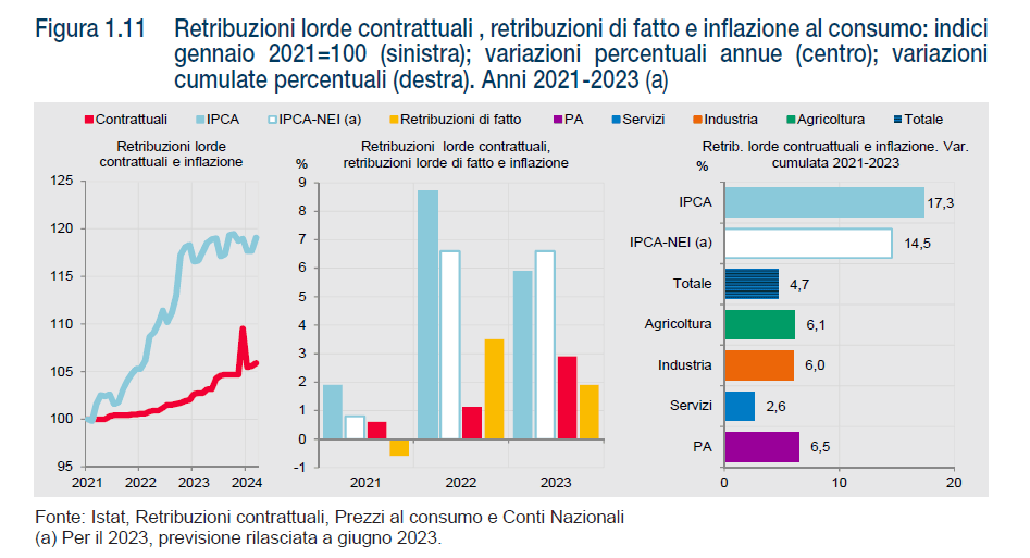 Ovviamente gli andamenti inflazionistici molto diversi hanno generato effetti altrettanto differenti in tutte le economie europee, sia per le imprese che per i lavoratori. Limitandoci al caso italiano, si osserva ad esempio un andamento delle retribuzioni di gran lunga inferiore a quello inflazionistico, con una notevole caduta del potere d’acquisto.