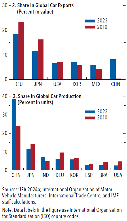La prima, evidente, è il declino di mercato dei produttori tradizionali. L’avvento dell’elettrico, cresciuti notevolmente, ha consentito alla Cina di aumentare le sue quote di valore di mercato, sia di produzione che esportazione, potendo Pechino sfruttare l’articolato (e sovvenzionato) sistema che di fatto ha trasformato la Cina nell’egemone nel settore dei veicoli elettrici.