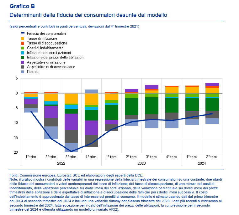 Tutto si tiene, come ben sa la Bce che ha dedicato al declino della fiducia dei consumatori un approfondimento nel suo ultimo bollettino economico osservando l’andamento della fiducia scomposta nelle sue diverse componenti.