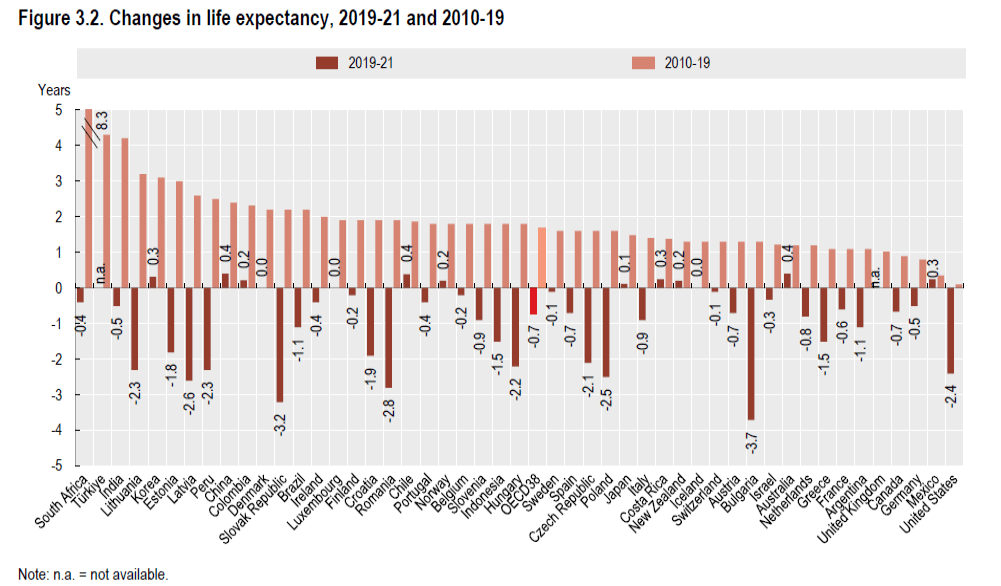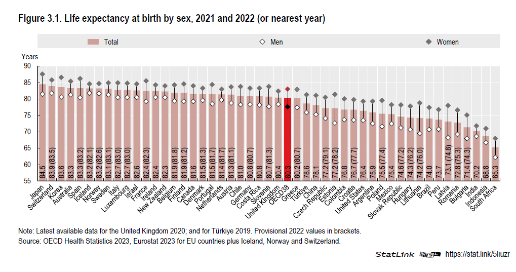Detto diversamente, dovremmo imparare a misurare il successo delle nostre società non semplicemente contando l’aumento della speranza di vita, ma quello dell’aumento della speranza di vita in buona salute. E su questo abbiamo ancora molto lavoro da fare, almeno a leggere l’ultimo rapporto Ocse sullo stato globale della salute nei paesi dell’area (Health at glance, 2023).
