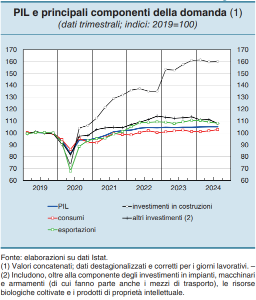 Gli ultimi dati diffusi dal bollettino economico di Bankitalia ci consentono di osservare degli andamenti della nostra economia che generano alcuni riflessioni che può essere utile mettere sul tavolo. La prima cosa che si osserva è l’ampia discrepanza fra gli investimenti in costruzioni, che hanno risentito dell’effetto espansivo del superbonus (e stendiamo un velo sulle conseguenze indesiderate), e gli altri investimenti, che risultano in crescita molto modesta.